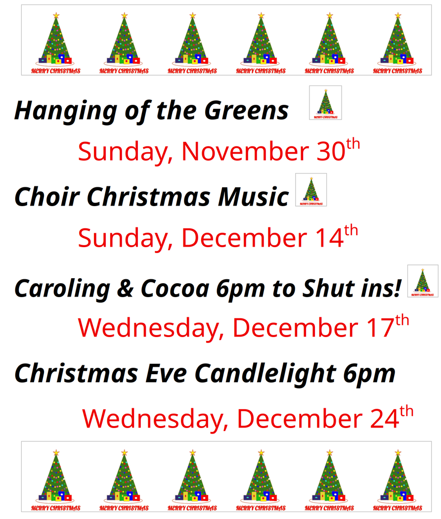 CWF (Women's Ministry) carries on an active ministry of service projects, outreach to the elderly homebound, and Bible study. Both daytime and nghttime meetings are held on a regular basis. Check with the church office for specific times and locations.